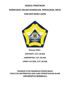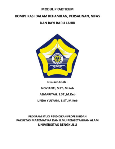 NOVIANTI, NOVIANTI and ASMARIYAH, ASMARIYAH and LINDA, YULYANI (2025) MODUL PRAKTIKUM KOMPLIKASI DALAM KEHAMILAN, PERSALINAN, NIFAS DAN BAYI BARU LAHIR. Other. PROGRAM STUDI PENDIDIKAN PROFESI BIDAN FAKULTAS MATEMATIKA DAN ILMU PENGETAHUAN ALAM UNIVERSITAS BENGKULU.
