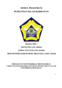 NOVIANTI, NOVIANTI and LINDA, YULYANI and RINI, MUSTIKASARI KURNIA PRATAMA (2025) MODUL PRAKTIKUM PENELITIAN DALAM KEBIDANAN. Other. PROGRAM STUDI PENDIDIKAN PROFESI BIDAN FAKULTAS MATEMATIKA DAN ILMU PENGETAHUAN ALAM UNIVERSITAS BENGKULU.