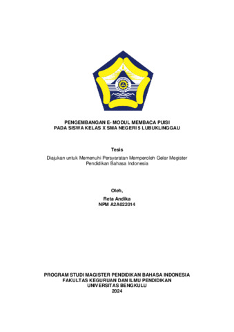 Andika, Reta and Arono, Arono and Agus, Trianto (2025) PENGEMBANGAN E- MODUL MEMBACA PUISI PADA SISWA KELAS X SMA NEGERI 5 LUBUKLINGGAU. Masters thesis, Universitas Bengkulu.